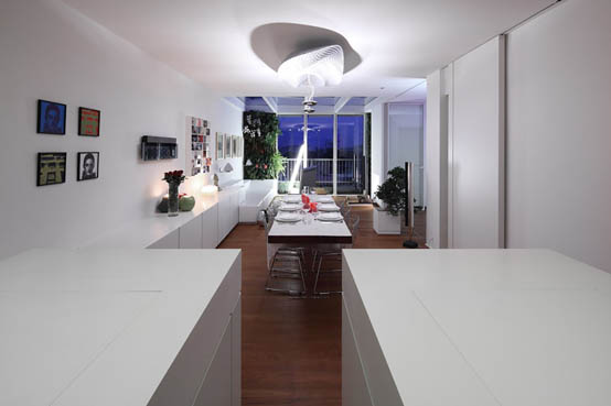 Планировка квартиры включает в себя две спальни и две ванные комнаты, кухню со столовой, гостиную и, как уже было сказано, внушительных размеров террасу с джакузи. (смотрите наш пост о террасе в стиле бохо)