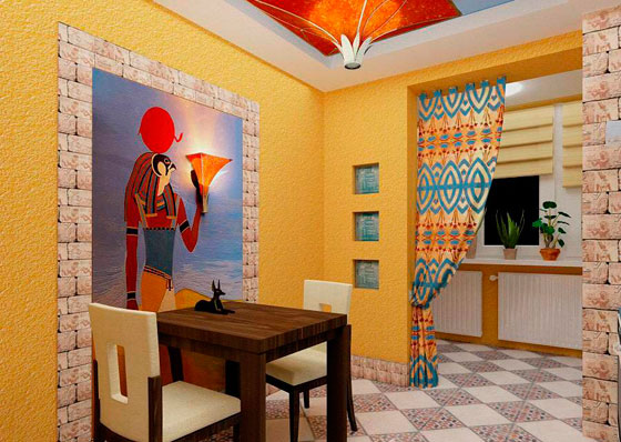 Цвет и рисунок на стенах будет диктовать стиль всей кухни.